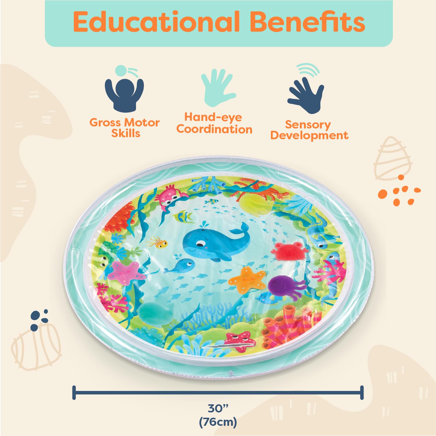 - Baby Water Mat: Fill, inflate, crawl, and play all day with a sea-themed water mat made for curious babies!