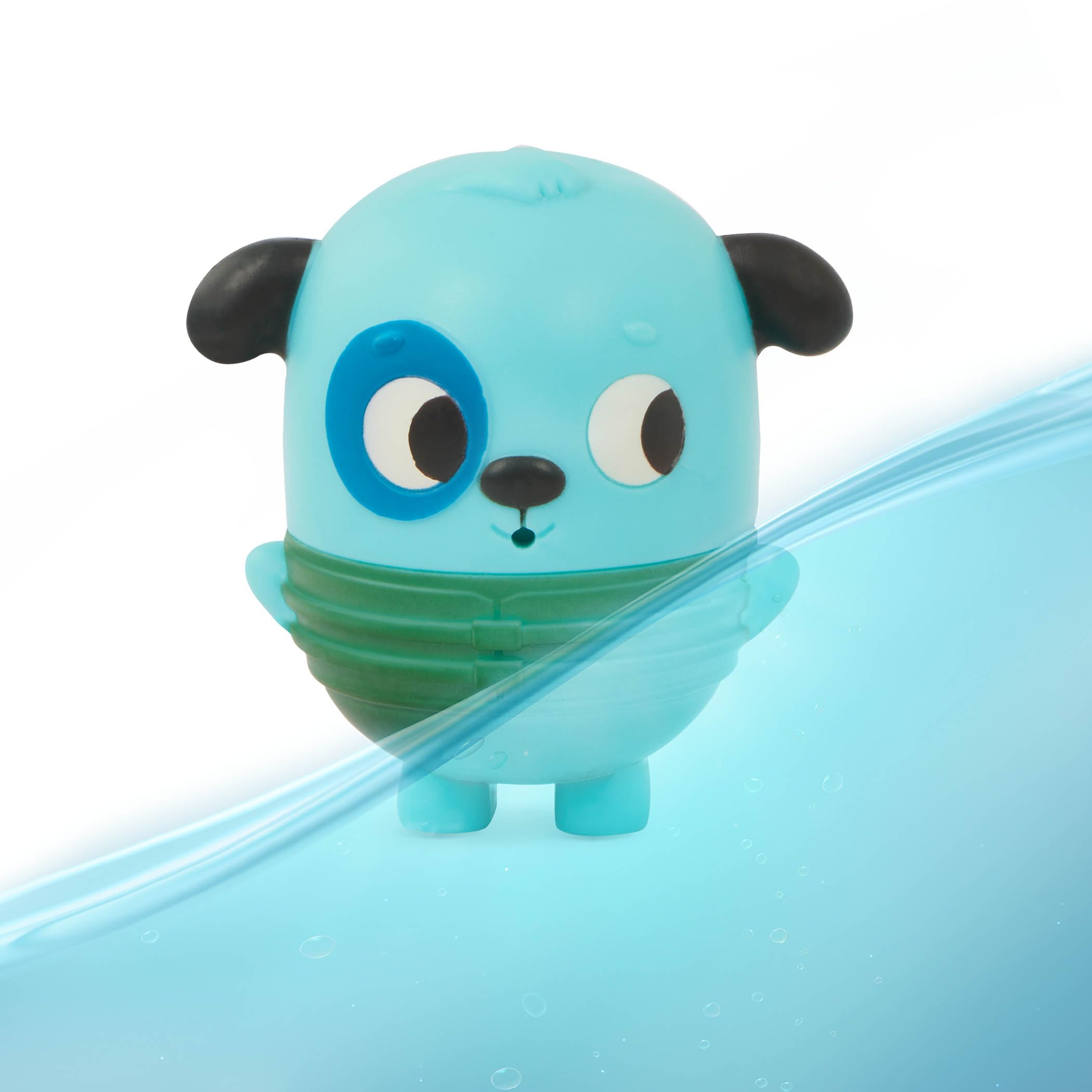- Pull-String Boat: Pull on the bath boat’s little fish to make the doggy squirt zoom and the water splish!